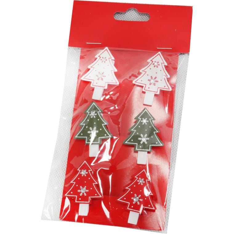 Zestaw 6 Klamerek Świątecznych z Motywem Choinkowym