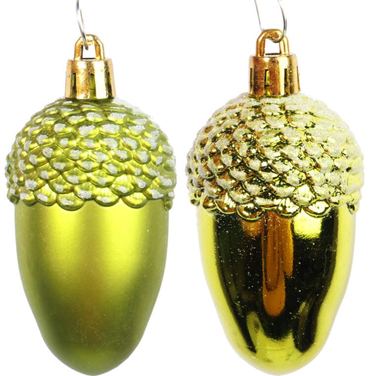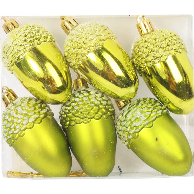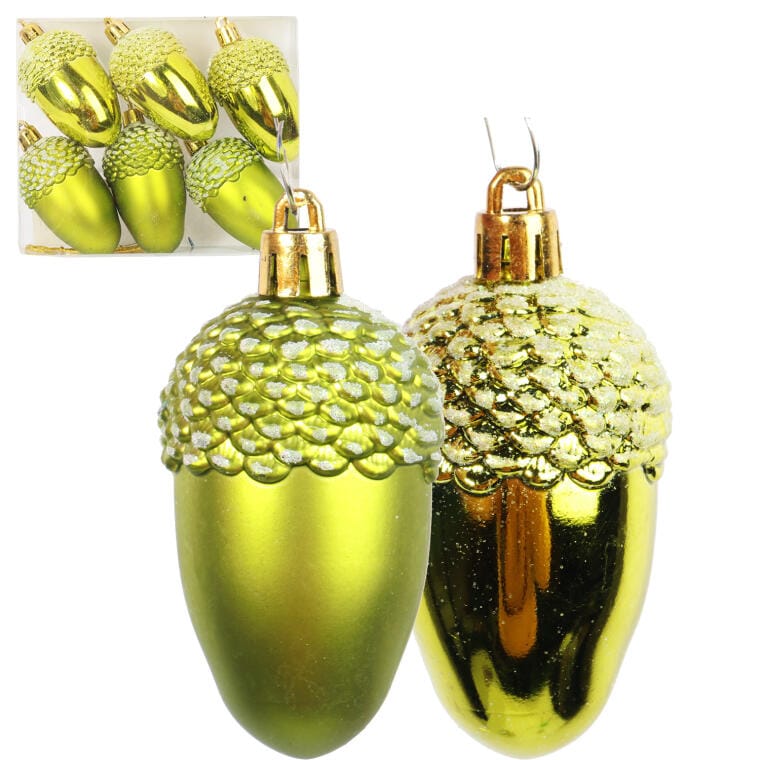 Zestaw 6 Plastikowych Bombek Bożonarodzeniowych – Zielone Żołędzie