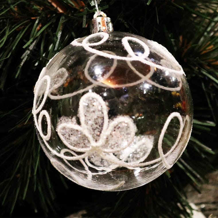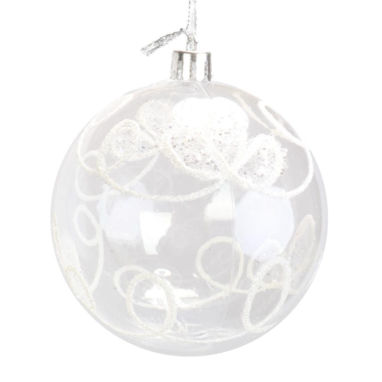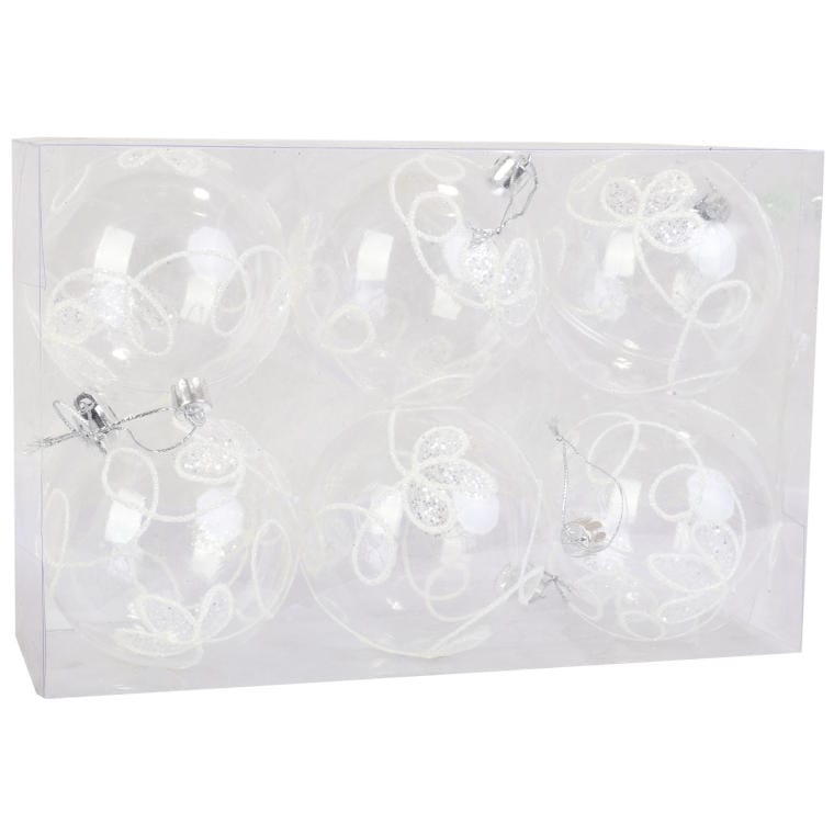 Zestaw 6 Przeźroczystych Bombek Plastikowych z Białym Brokatem, 8 cm