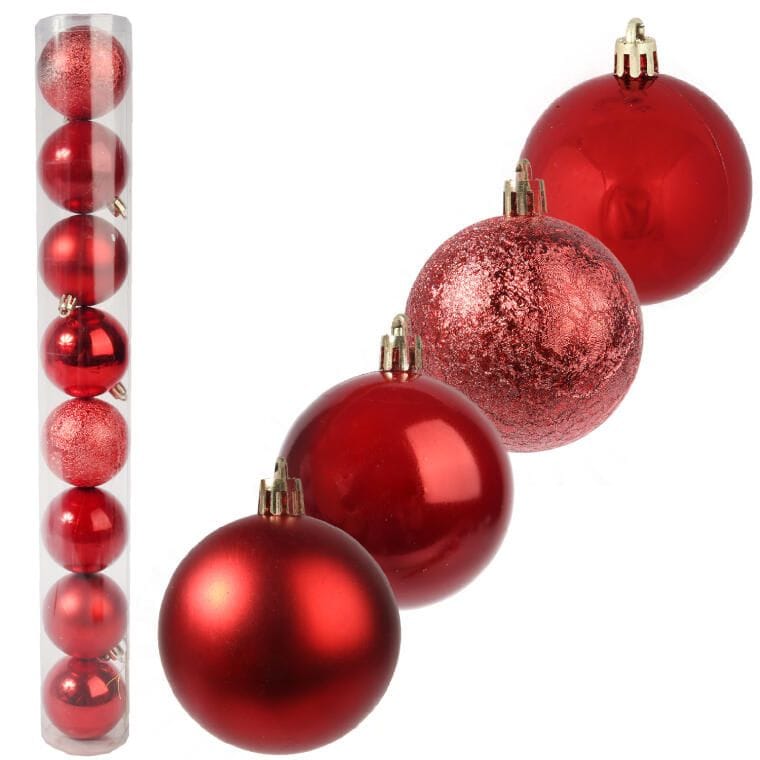ZESTAW 8 BOMBEK PLASTIKOWYCH 6 CM CZERWONE