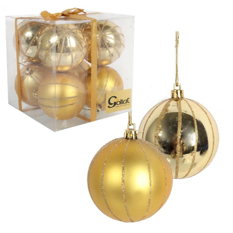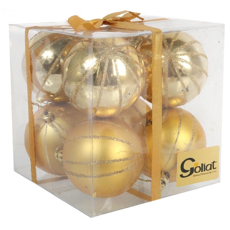 Zestaw 8 Złotych Bombek Plastikowych 7 cm z Brokatowym Dekorem