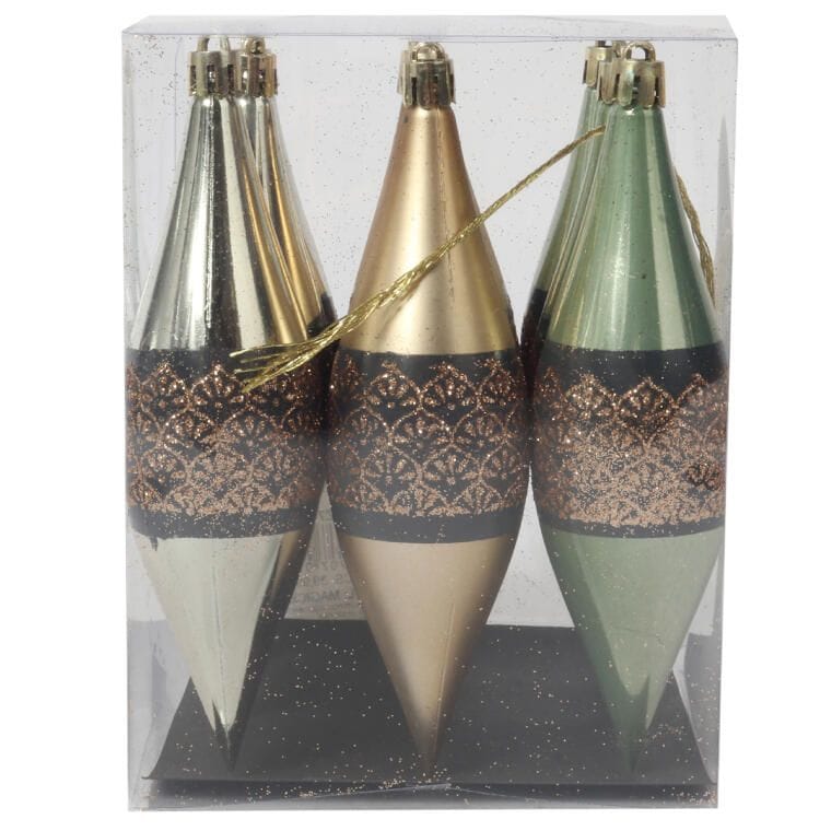 Zestaw 9 Plastikowych Bombek w Kształcie Sopli z Brokatowym Dekorem, 15 cm