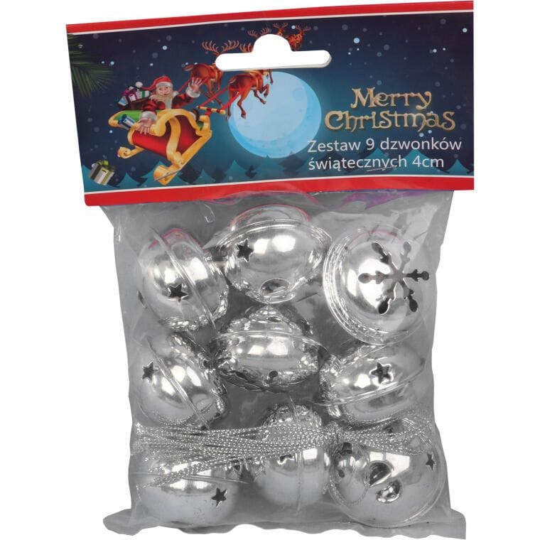 Zestaw 9 Srebrnych Dzwonków na Choinkę – Świąteczne Dekoracje Bożonarodzeniowe