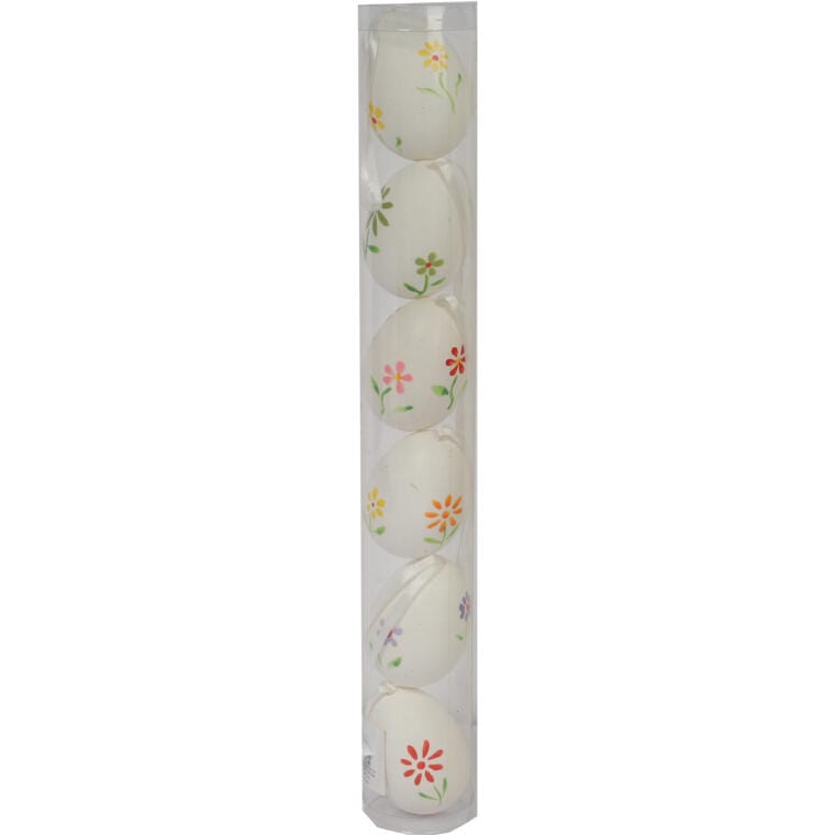 Zestaw Białych, Plastikowych Jajek Wielkanocnych do Zawieszenia – 6 sztuk, 6 cm