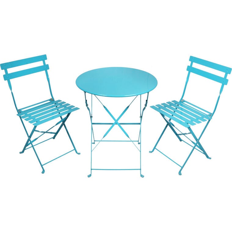 Zestaw Bistro Francuskie na Balkon lub Ogród – Składany Stół i Krzesła w Kolorze Niebieskim