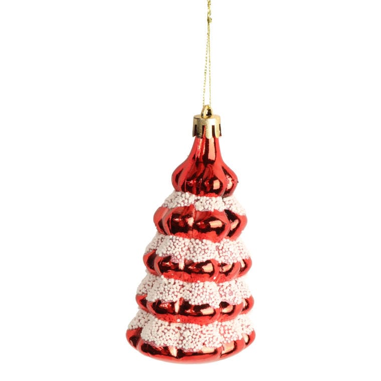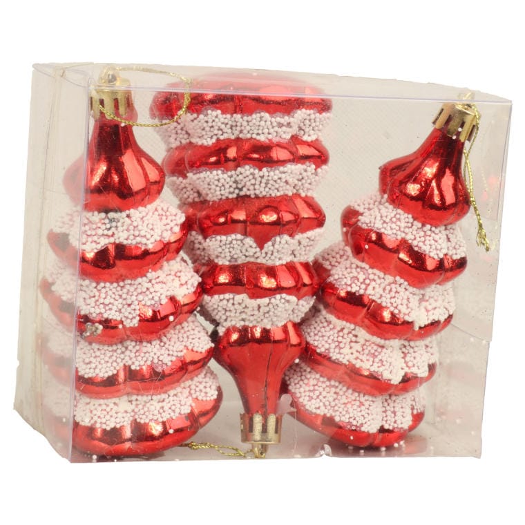 Zestaw Czerwonych Bombek w Kształcie Choinki z Brokatem – 3 Sztuki