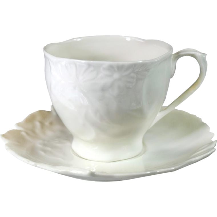 Zestaw do herbaty i kawy: Biała zdekorowana filiżanka z talerzykiem