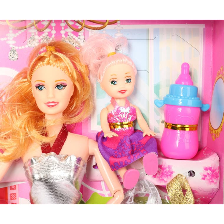 Zestaw do zabawy z lalką i jej maluszkem z akcesoriami, czerwony