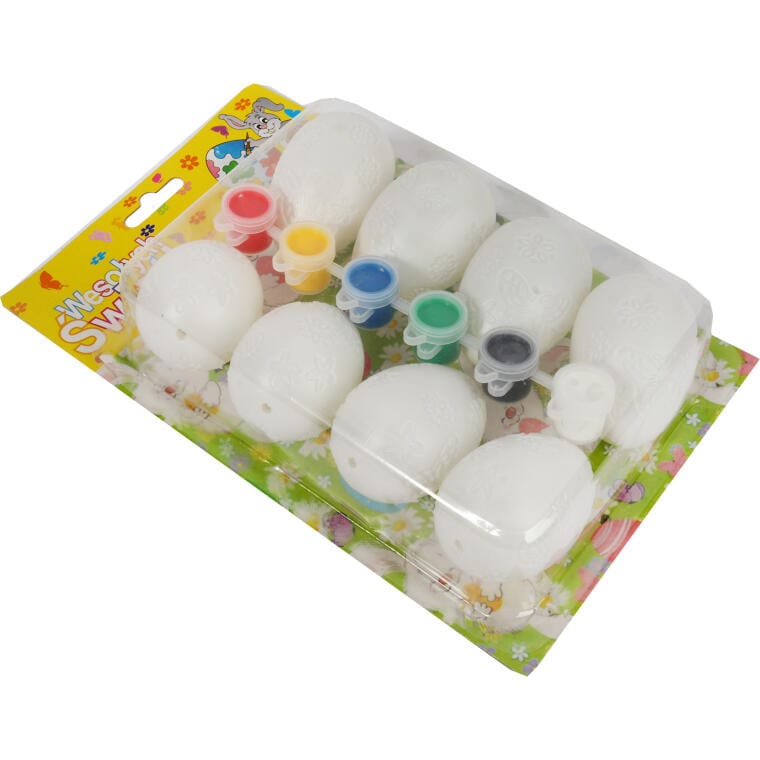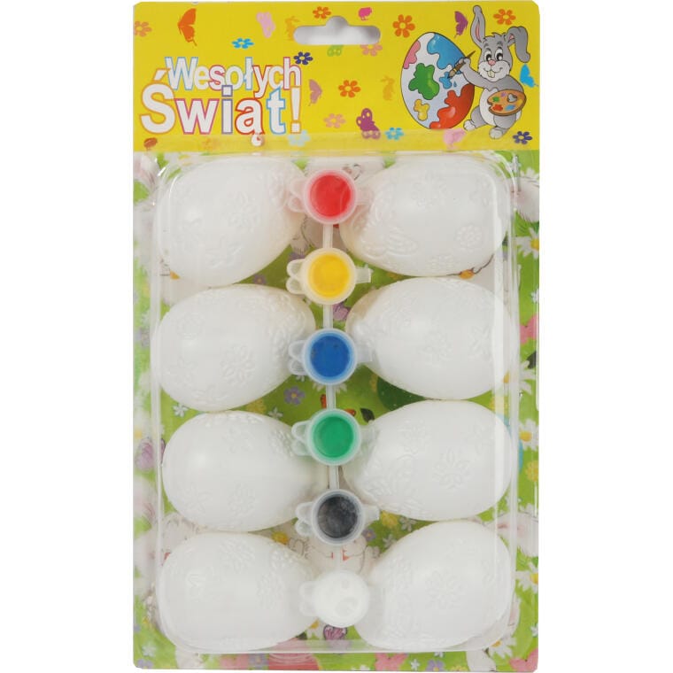 Zestaw Kreatywny Wesołe Pisanki – 8 białych jajek do malowania z farbami pastelowymi i pędzelkiem