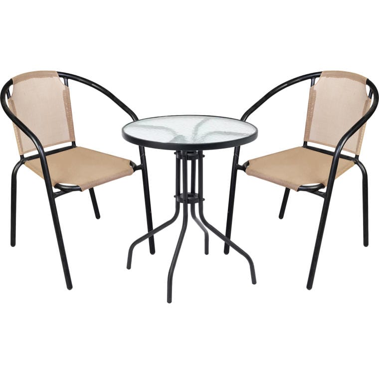 Zestaw Mebli Ogrodowych Bistro Beżowy 2+1 z Szybą Hartowaną