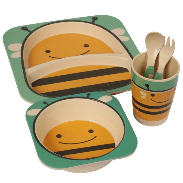 Zestaw niebieskich naczyń dla dzieci z pszczółką
