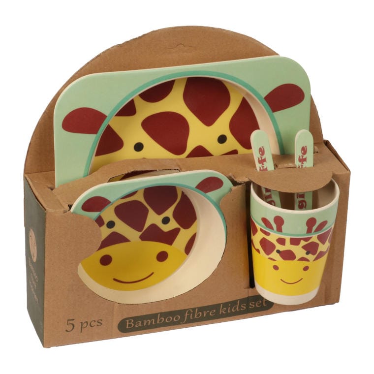 Zestaw seledynowych naczyń dla dzieci z żyrafą