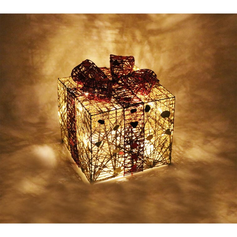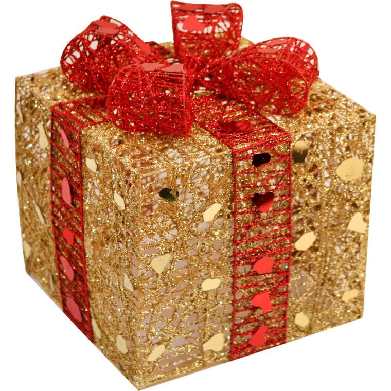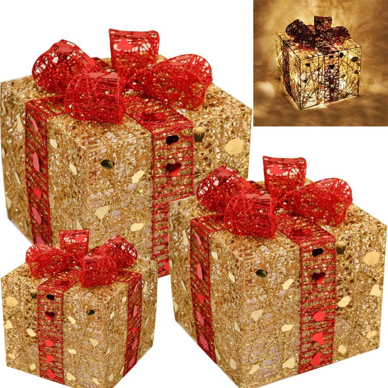 Zestaw Trzech Świątecznych Dekoracji Świetlnych w Kształcie Prezentów, Zasilanych na Baterie, Kolor Złoto-Czerwony