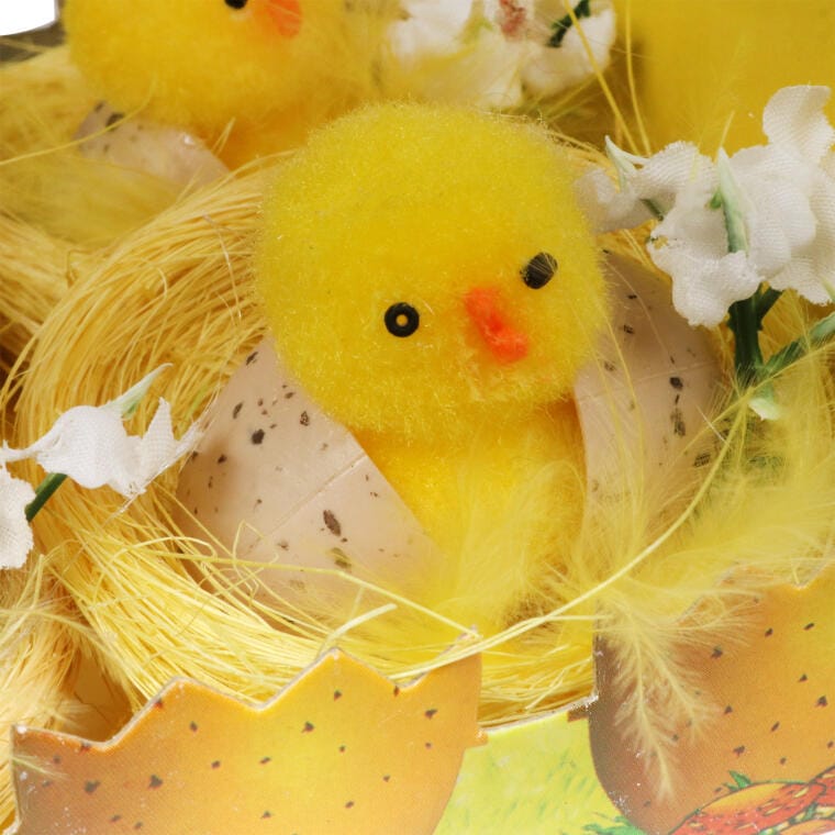 Zestaw kurczaczków wielkanocnych składający się z czterech uroczych i miękkich ozdób w kolorze żółtym to doskonały wybór dla każdego, kto pragnie dodać wyjątkowego klimatu swoim wiosennym dekoracjom. Każdy kurczaczek w skorupce otoczony jest delikatnym siankiem oraz białymi kwiatkami, co sprawia, że idealnie wpisuje się w tematykę zarówno świąteczną, jak i okazjonalną. Te urocze kurczaczki doskonale sprawdzą się w tworzeniu własnych kompozycji, stroików czy ozdób, wprowadzając do wnętrza radosny akcent. Ich wszechstronność pozwala na różnorodne zastosowanie, od dekoracji stołów po uzupełnienie aranżacji w wazonach, co czyni je niezastąpionym elementem każdej świątecznej atmosfery. Kurczaczki zapakowane są w estetyczny box PVC, co sprawia, że są również świetnym pomysłem na prezent.