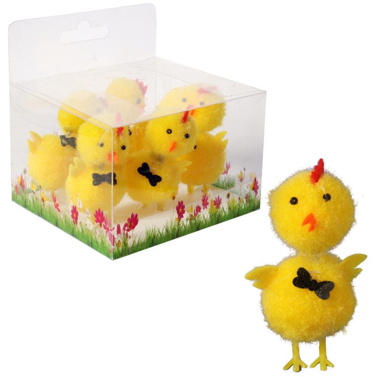 Zestaw Zabawnych Kurczaków z Muszkami – Dekoracje Wielkanocne 6cm, 6szt