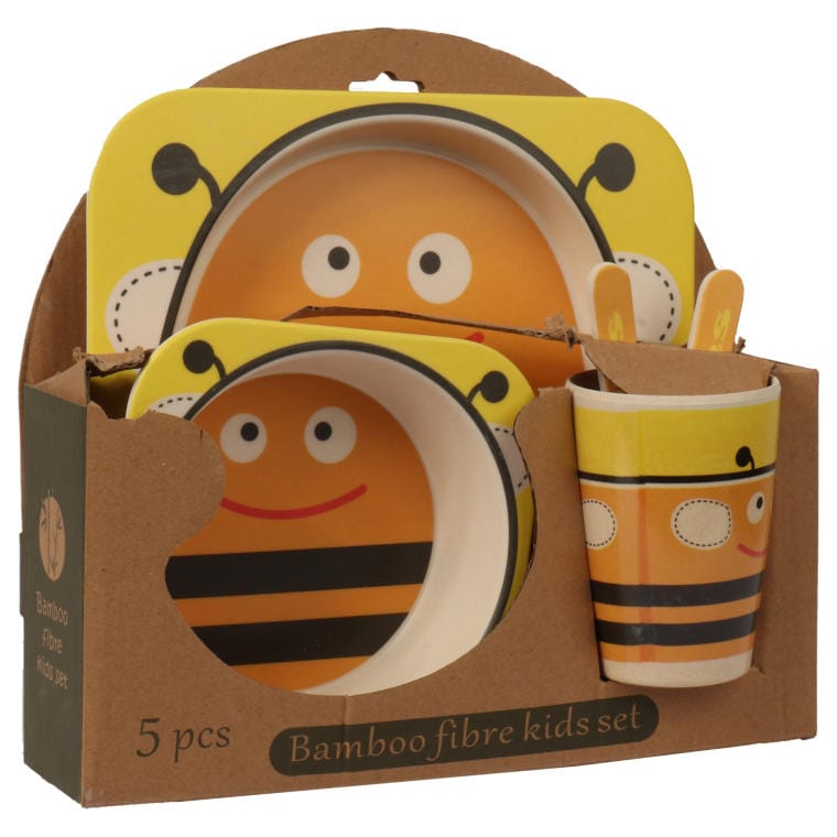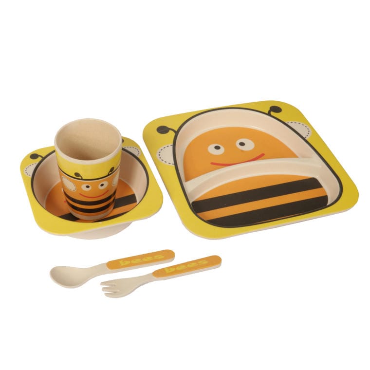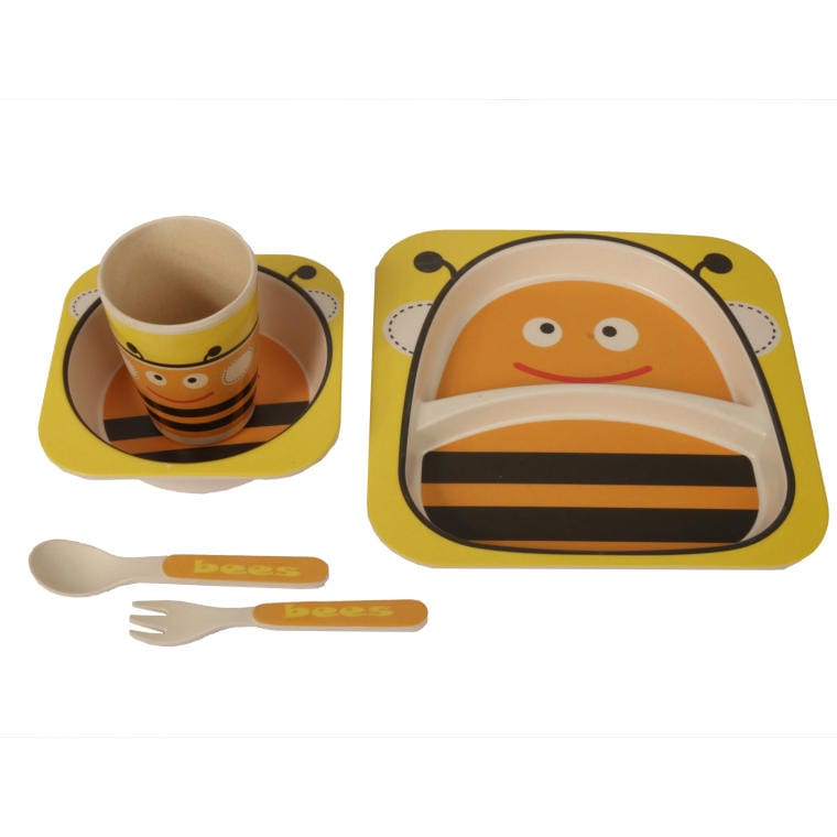 Zestaw żółtych naczyń dla dzieci z pszczółką