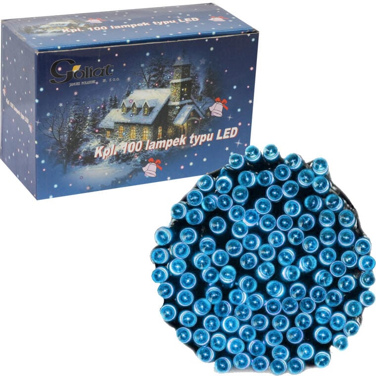 Zewnętrzne Lampki Choinkowe LED 100 szt. Niebieski Kolor światła, Biały Przewód, Kontroler 8 Funkcji, Zasilanie Sieciowe