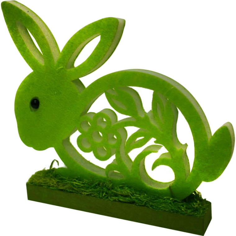 Zielony Zając Dekoracyjny na Drewnianej Podstawce – Wielkanoc 20x20x3cm
