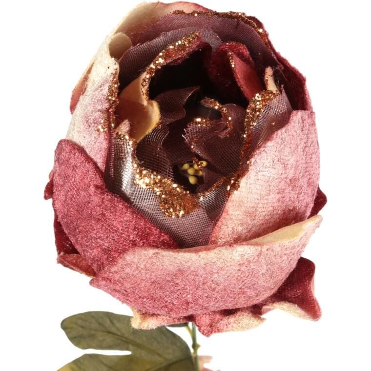Kwiat sztuczny – piwonia świąteczna welurowa z brokatem o wysokości 62 cm to efektowna dekoracja, która dzięki wysokiej jakości materiałom wygląda jak żywy kwiat. Subtelny połysk brokatu na welurowych płatkach nadaje kompozycjom elegancji i świątecznego blasku, sprawiając, że piwonia doskonale prezentuje się zarówno jako samodzielna ozdoba w wazonie, jak i jako element większych aranżacji, stroików czy dekoracji bożonarodzeniowych. Dzięki starannemu wykonaniu i naturalnemu wyglądowi wprowadza do wnętrza przytulny, świąteczny nastrój, a jej uniwersalny design harmonijnie komponuje się z różnymi stylami wnętrz i dodatkami. To trwała i efektowna dekoracja, która przez wiele sezonów zapewnia elegancki i przyciągający wzrok efekt wizualny.