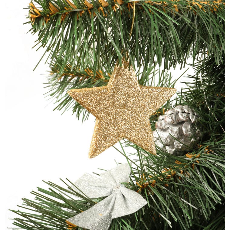 Ta elegancka zawieszka brokatowa w kształcie gwiazdy w kolorze złotym to doskonała ozdoba świąteczna, która doda blasku i magii do każdego wnętrza. Wykonana z wysokiej jakości materiałów, zawieszka zachwyca swoim połyskującym wykończeniem, które pięknie odbija światło, tworząc niepowtarzalny klimat w czasie świąt. Złota gwiazda idealnie sprawdzi się jako dekoracja choinkowa, a także jako element wystroju stołu, okna czy kominka, wprowadzając do przestrzeni radosny i świąteczny nastrój. Jej uniwersalny design sprawia, że doskonale komponuje się z różnorodnymi aranżacjami, od klasycznych po nowoczesne. Ożyw swoje otoczenie tą olśniewającą gwiazdą, która stanie się pięknym symbolem nadchodzących świąt oraz chwil spędzonych z bliskimi.