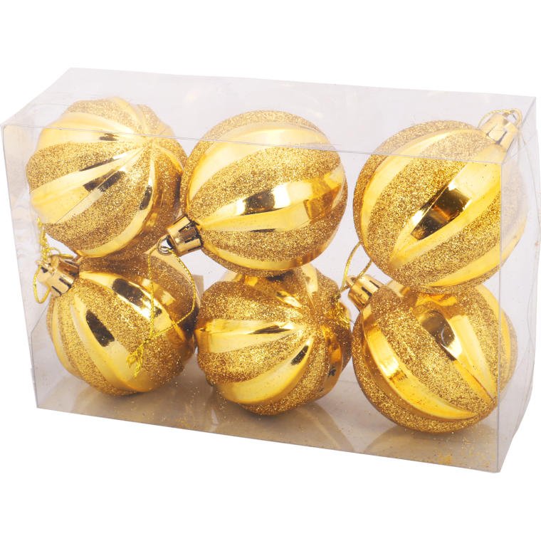 Złote Bombki Choinkowe Dekorowane Wytłaczaniem 6cm – zestaw 6szt