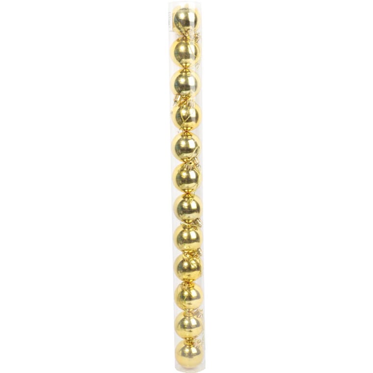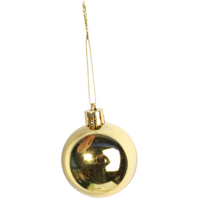 Bombki 12 sztuk Bombki plastikowe w kolorze złotym 12 szt z połyskiem, to świetny i bardzo elegancki element do dekoracji bożonarodzeniowego drzewka, które przyciągnie wzrok i zachwyci klimatem. Roztoczy aurę wyjątkowych, rodzinnych świąt, a ta doskonale przeniknie do wszystkich domowników i gości. Bombki plastikowe o bardzo starannym wykonaniu. Zastosowanie takiego materiału jest alternatywą dla klasycznych, szklanych ozdób, które nie są tak trwałe i odporne na zniszczenie. Wysokość: 5 cm Opakowanie: 12 sztuki Kolor: złoty