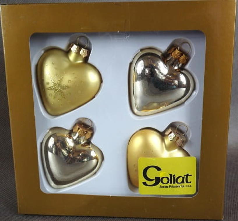 Złote Bombki Świąteczne w Kształcie Serc – Komplet 4 Sztuk