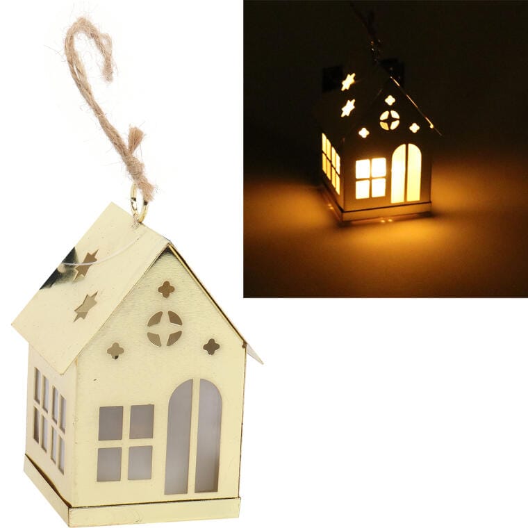 Złoty Domek LED na Baterie jako Dekoracja Wisząca