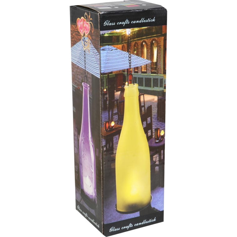 Żółta butelka na świeczkę z łańcuszkiem