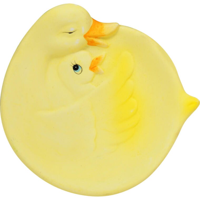 Żółta Ceramiczna Dekoracja Stołowa – Talerzyk w Kształcie Kaczki z Kaczątkiem