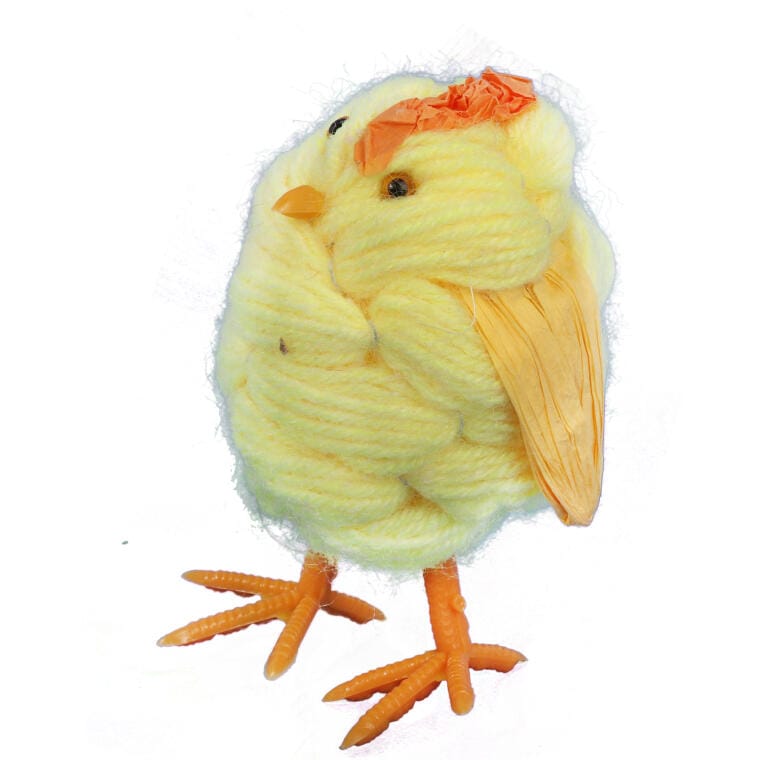 Żółta Figurka Kurczaka z Włóczki 10 cm – Dekoracja Wielkanocna i Tematyczna
