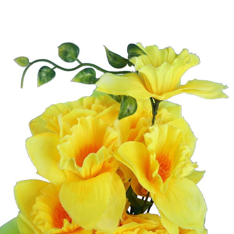 Sztuczny bukiet 18 żonkili to doskonały wybór dla tych, którzy pragną wprowadzić do swojego wnętrza odrobinę świeżości i koloru. Wykonany z materiałów najwyższej jakości, ten bukiet żonkili wyróżnia się niezwykle realistycznym wyglądem, który doskonale imituje naturalne kwiaty. Dzięki precyzyjnemu wykonaniu i starannie dobranym detalom, sztuczny bukiet o wysokości 50 cm stanowi elegancką dekorację, idealną zarówno jako samodzielny element ozdobny, jak i w zestawie z innymi aranżacjami. Doskonale sprawdzi się w różnych przestrzeniach, takich jak salon, sypialnia, biuro czy jako dekoracja na specjalne okazje. Bukiet 18 żonkili to perfekcyjna propozycja dla osób ceniących piękno kwiatów bez potrzeby ich pielęgnacji.